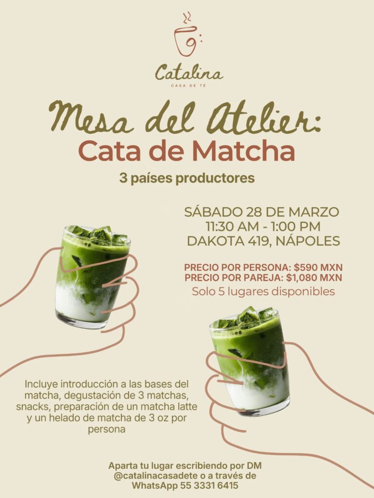 Incluye introducción a las bases del matcha, degustación de 3 matchas, snacks, preparación de un matcha latte y un helado de matcha de 3 oz por persona